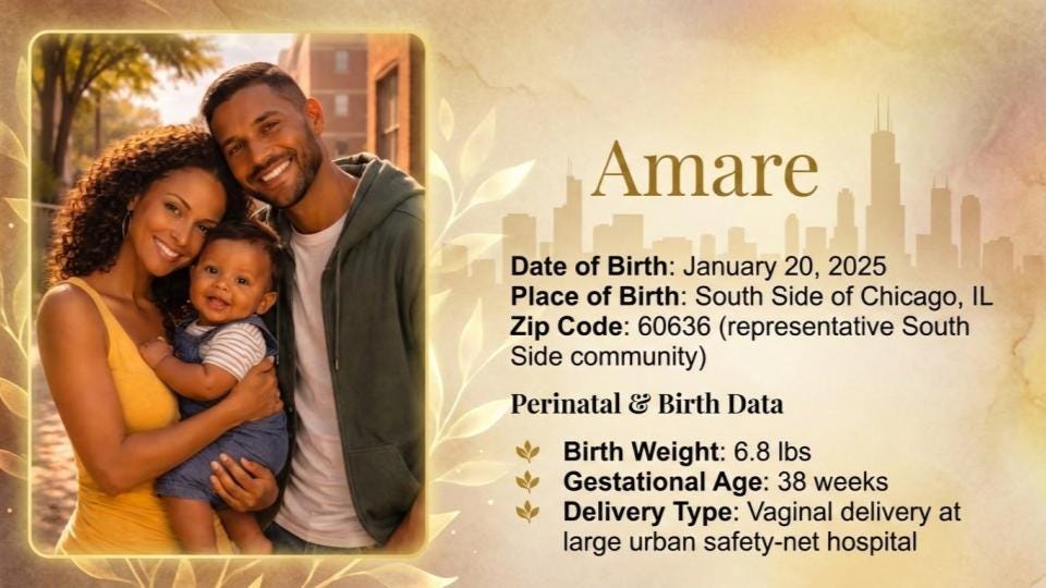 I came into this world on a gray January afternoon in 2026, at the University of Chicago Medical Center. My mama jokes that I couldn’t wait—came two weeks early, like I was in a hurry to get started. She says I came out crying loud, fists clenched, already fighting.