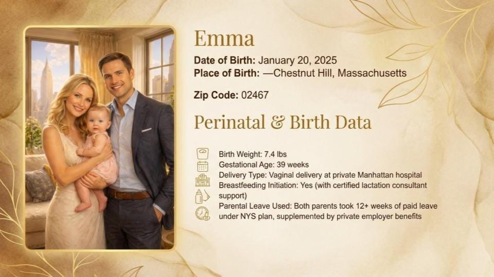 I was born on a bright January morning in 2026, at Brigham and Women’s Hospital in Boston—one of the top-ranked hospitals in the country. My delivery was scheduled, a planned C-section at 39 weeks because my mother’s OB-GYN wanted to ensure everything went perfectly. And it did.