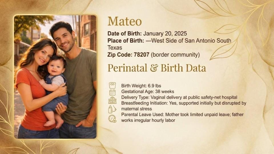 I was born on a January afternoon in 2026 at University Hospital in San Antonio, Texas. I came into the world crying, healthy, a U.S. citizen from my first breath. The nurse put a little bracelet on my wrist with my name, my birthday, my medical record number. Official. Legal. American.